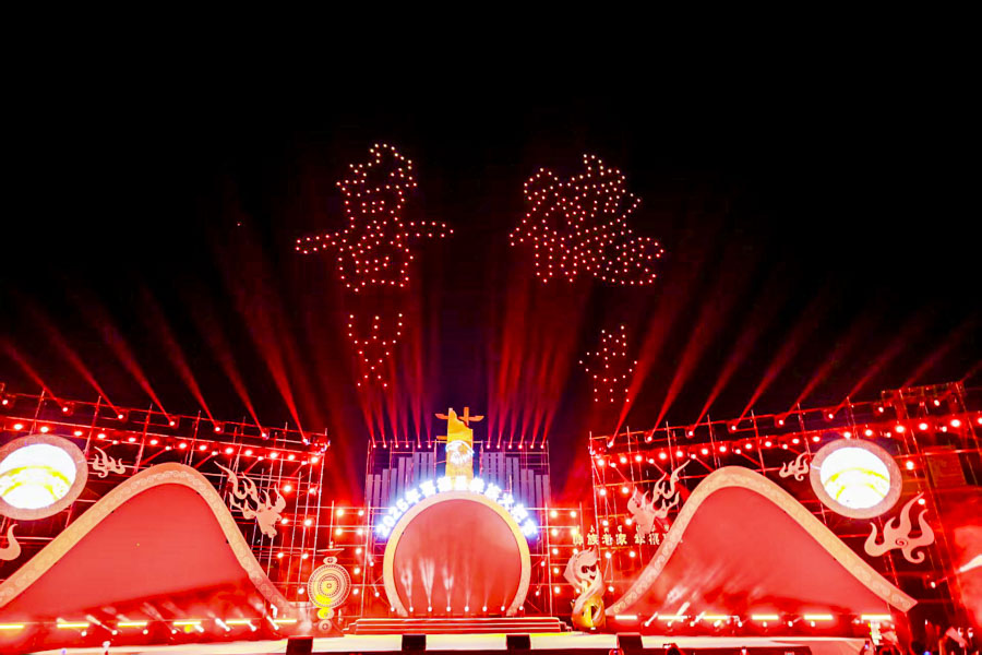 蜀交低空:無人機燈光秀璀璨火把節夜空